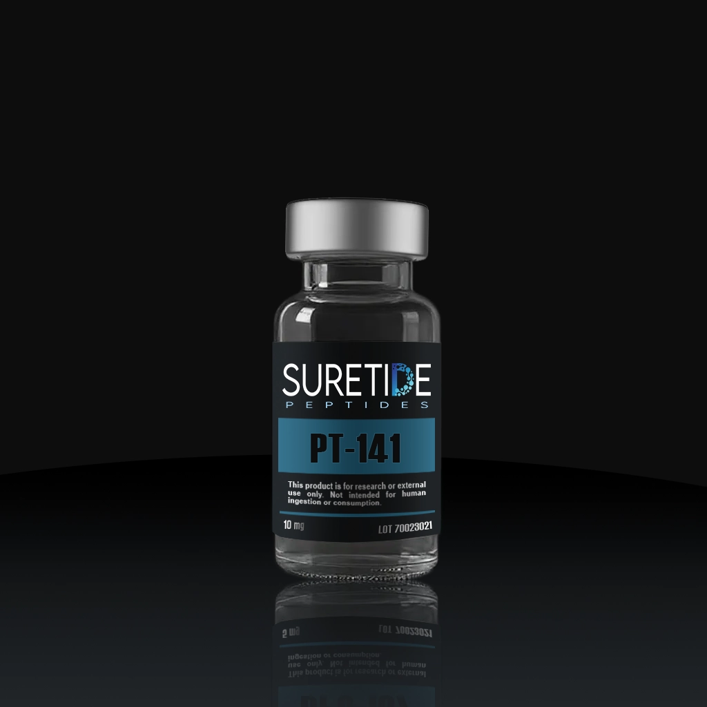 PT-141 is a synthetic peptide studied for its interaction with melanocortin receptor pathways. In laboratory environments, it is used to investigate receptor activation, signaling cascades, and neuropeptide interactions. Its receptor specificity makes it useful in controlled biochemical research applications.